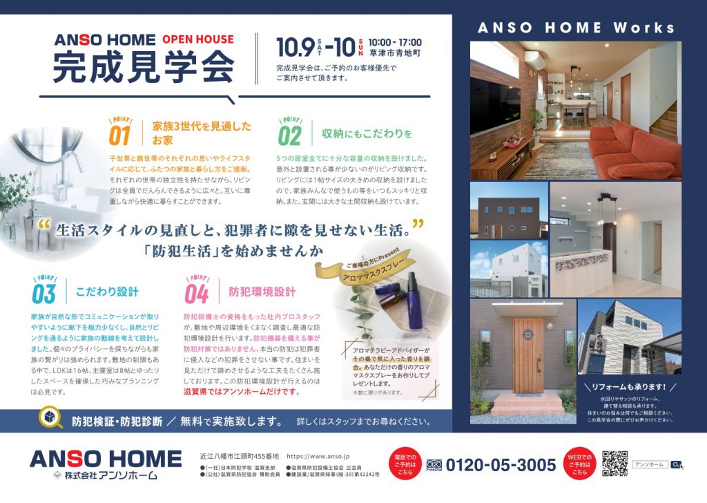 アンソホームの施工例や、防犯住宅の詳細などをご覧いただけます。