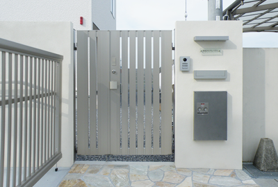 電気錠付門扉は、カギの施解錠をLEDの点灯と確認音で確実にお知らせします。遠隔操作もできるので室内からモニターホンで来客を確認でき、「不審者かも!?」と感じたら解錠しないことも可能です。