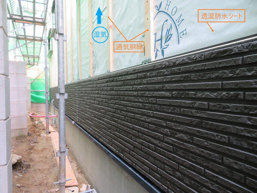 それから、建物躯体と外壁材の間に隙間を設け、そこから湿気を放出![]()