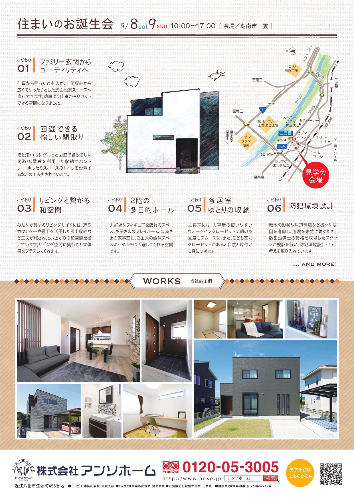 アンソホームの施工例や、防犯住宅の詳細などをご覧いただけます。