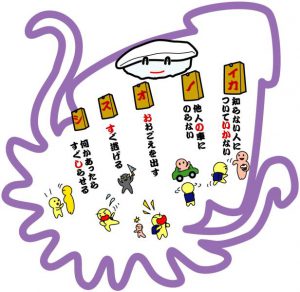 それと、防犯標語の「いかのおすし」も思い出しました![]()