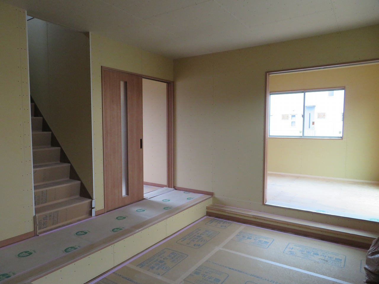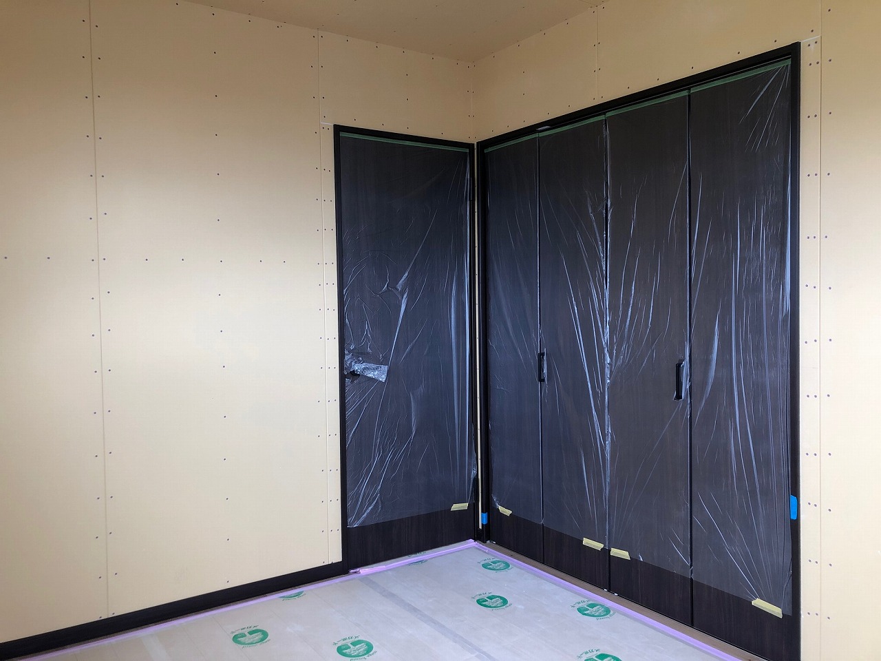 現在は、クロス工事の下地処理を進めています![]()