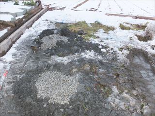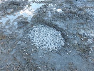 加圧しながら砕石を投入です。