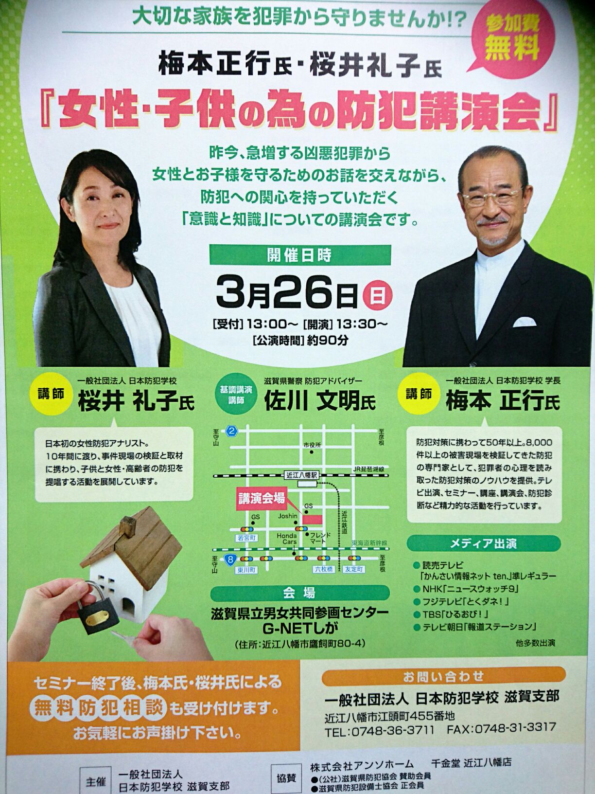 3月26日(日)に『女性と・子供の為の防犯講演会』を開きます。