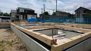 大工さんが土台を据えて床組みをされます。