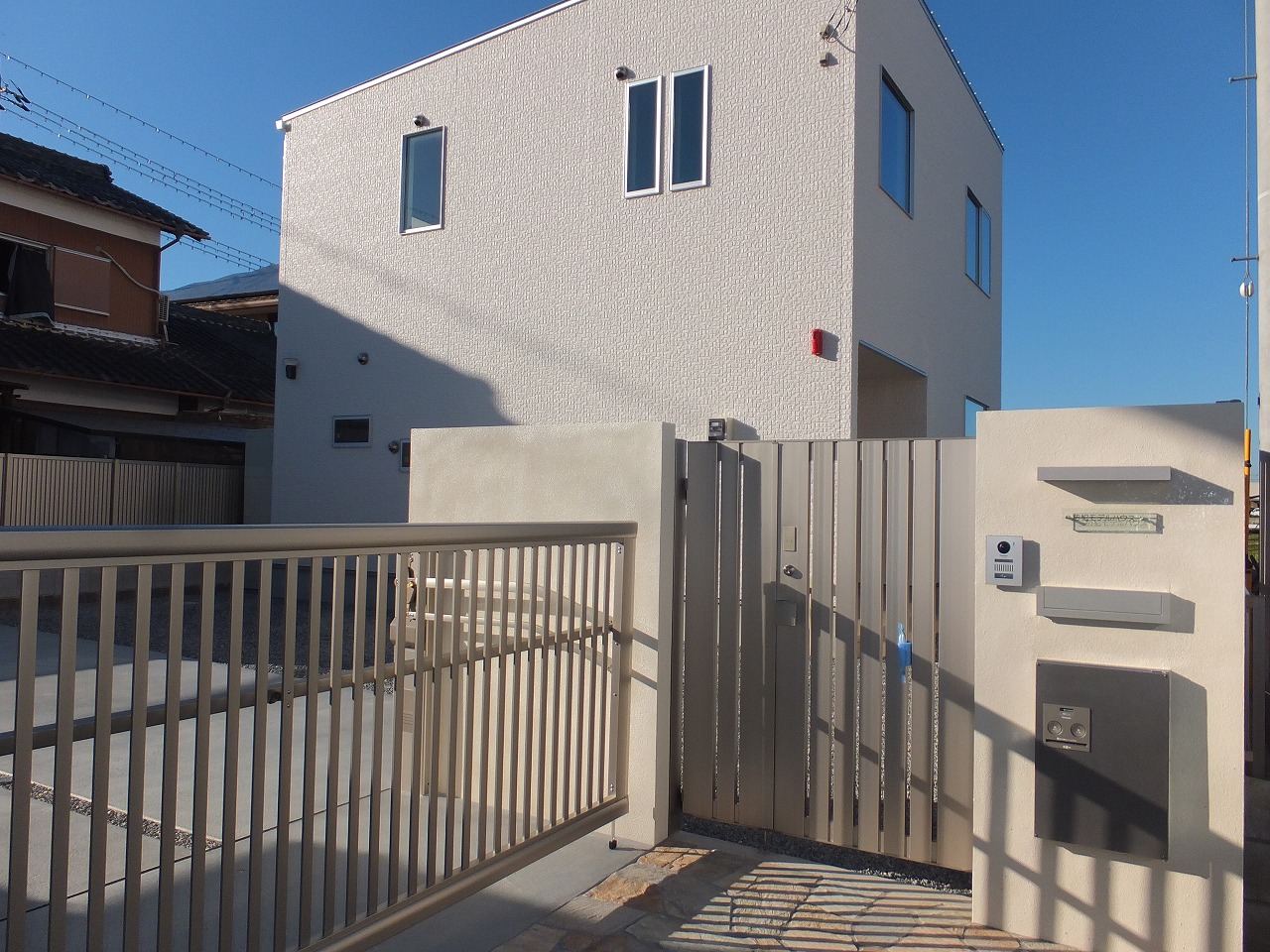 外壁の赤い威嚇機は、付いているだけで防犯効果が上がりますね…