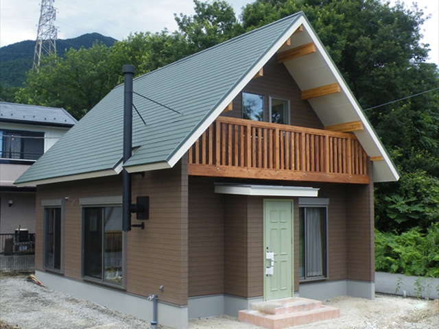 比良山系をバックに佇む「とんがり屋根のお家」 ナチュラルな雰囲気の室内に薪ストーブがあり外国の雰囲気に 大きな開口部...