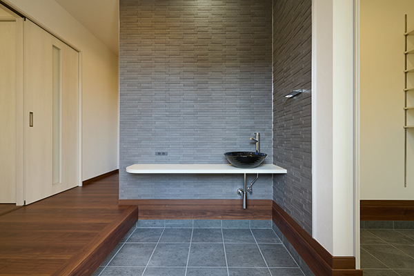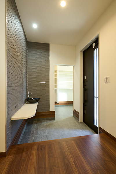 風光明媚な陶芸の町に威風堂々とした佇まいの邸宅。アンソホームが得意とする「高性能・ZEH」に防犯仕様をプラスしてご家族に安心をもたらします。玄関を開けるとすぐあるのが信楽焼きを用いた衛生的な手洗い場、アフターコロナ時代の新生活様式を取り入れました。また、住まいの約19%が収納となっており室内をいつもスッキリさせることが出来ます。