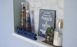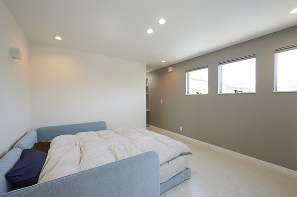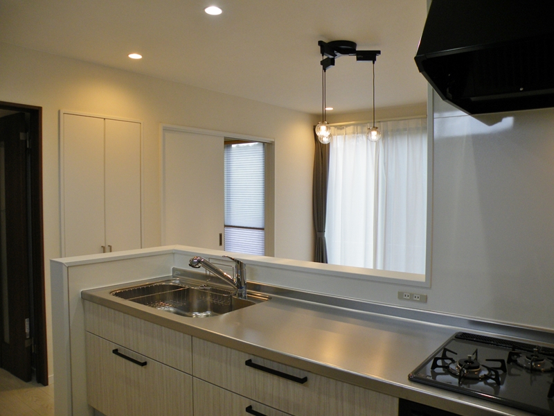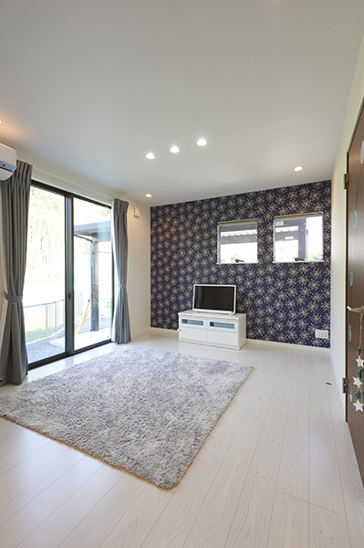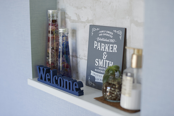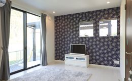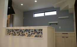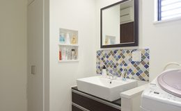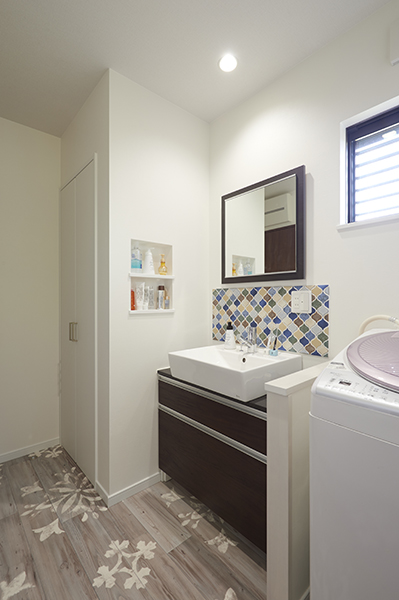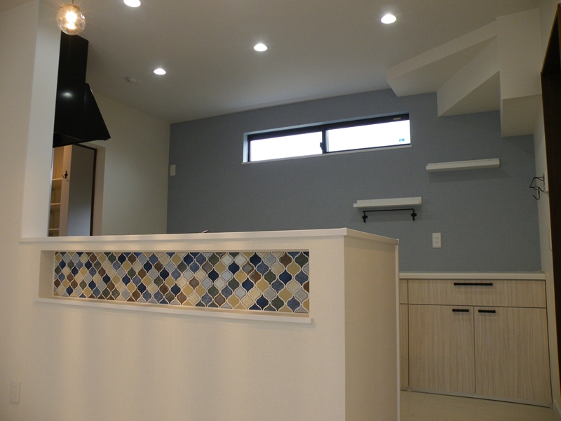 各部屋にアクセントを入れつつ、統一感のある色合いで落ち着きのある大人カワイイ内装。キッチンと洗面化粧台にはモザイクタイルでワンポイント!