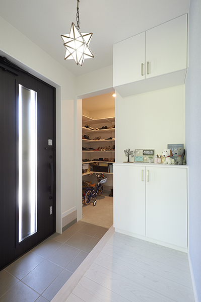 生活動線をスムーズにするファミリー玄関と土間収納はいつでもスッキリな玄関をキープすることができます。