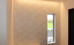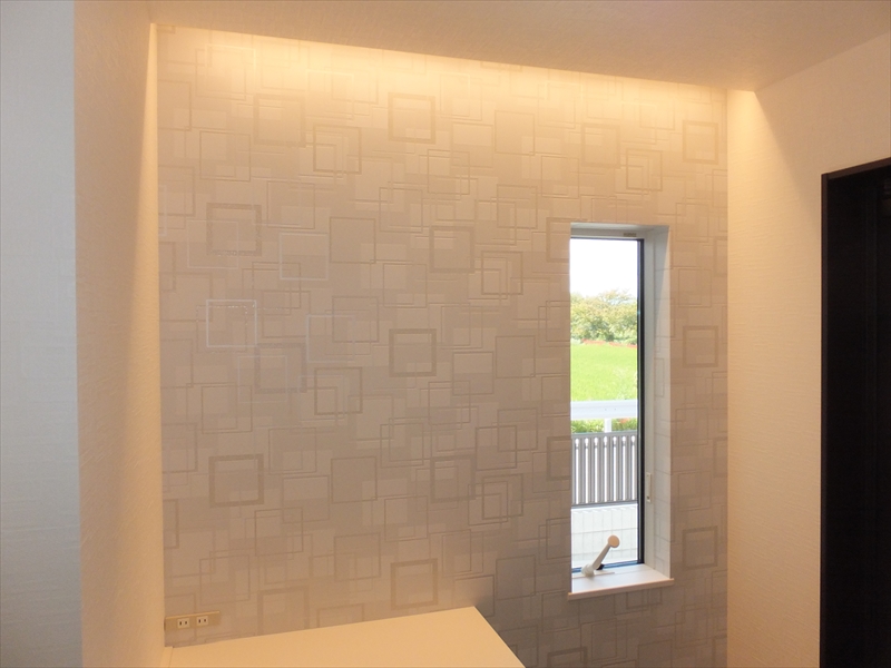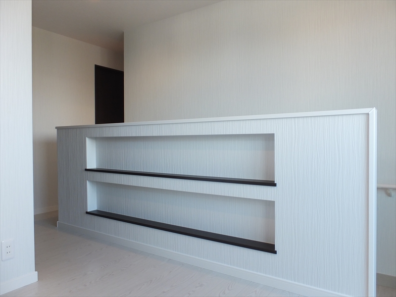 2階の多目的ホールは大好きなフィギュアを飾れるスペースを設けました。プレイルーム、家事室、趣味の部屋とマルチに活用できる空間になっています。