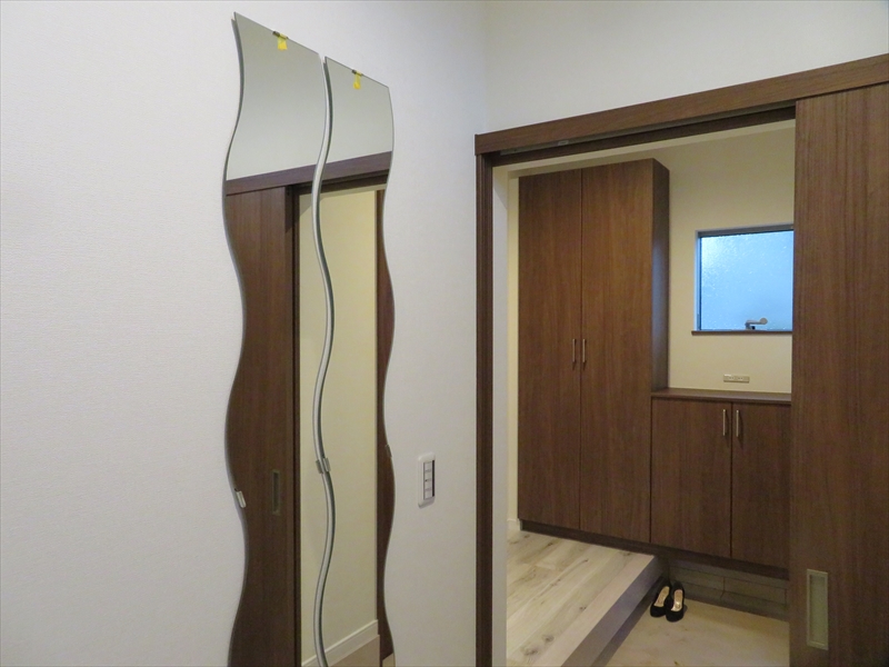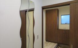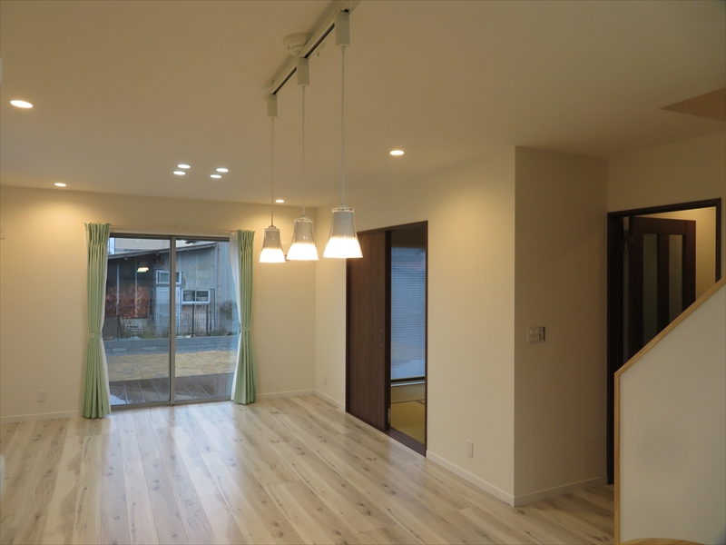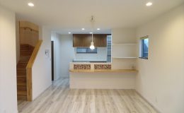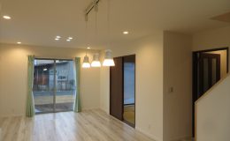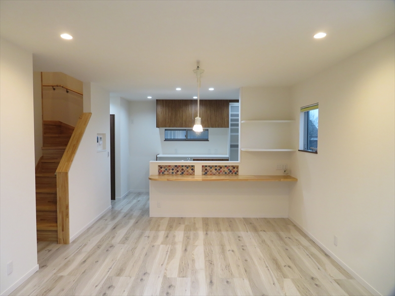 家事ラクを考えた回遊動線では、階段を中心にキッチン→ダイニング→玄関→洗面室をぐるりとまわれるようにしました。
