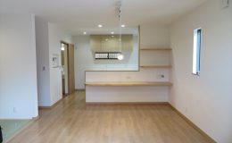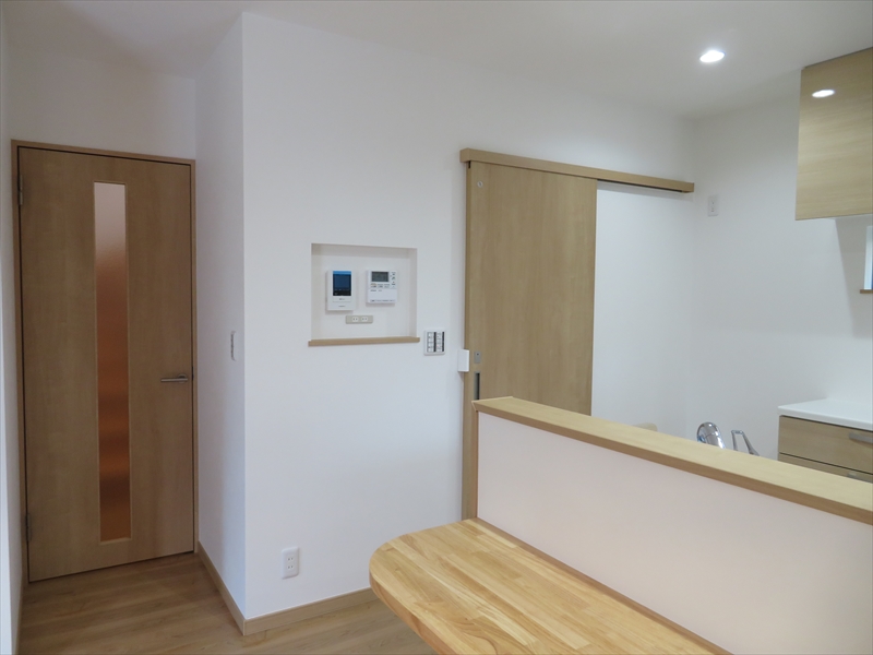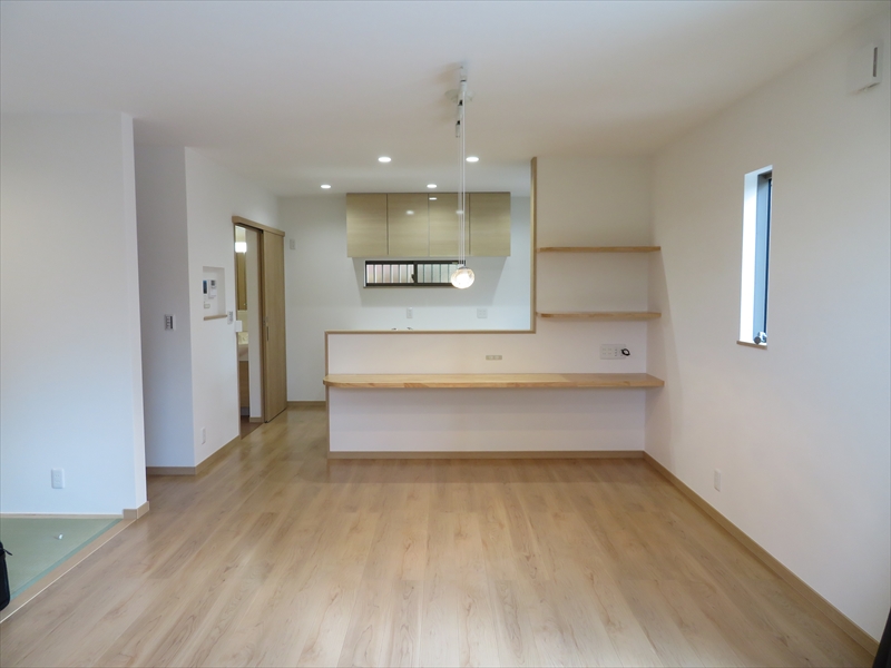 キッチン前には魅せる収納ができる造作のカウンターを設置しました。
